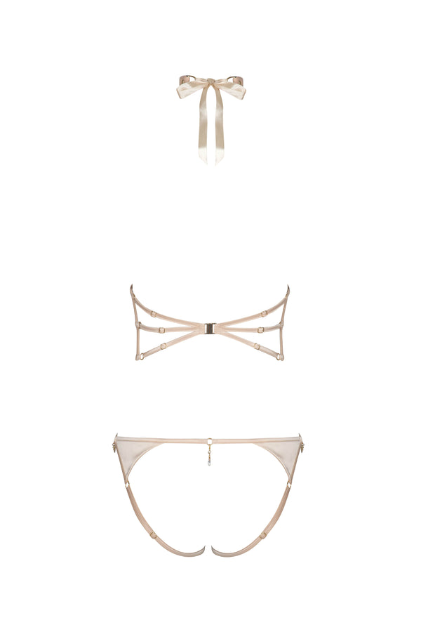This capsule collection celebrates ‘fragility and strength’ by the contrast and contradiction of using handmade leather accessories with delicate lingerie pieces. Going against convention, this collection is designed to showcase the female form through interchangeable pieces that can be worn both as lingerie or fashion accessories.